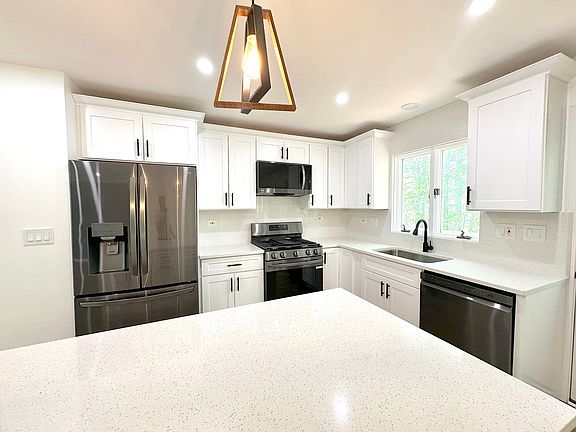 Welcome Home! The main level in this home features all new floor throughout and includes open floor plan ideal for entertaining. The kitchen has waterfall quartz large island, all new soft closed kitchen cabinets, all new kitchen appliances and lastly new quartz throughout kitchen and as backsplash. Main level also includes 3 bedrooms and 1 bathroom. All new bathroom has bluetooth speakers connected to fan, and double sink vanity which includes quartz countertop. The lower level has a large room that can be used up to your imagination. Laundry room and 1/2 bathroom are in this level. 2 car garage and plenty of parking space in the new alpha driveway . Walking distance from elementary school. Don't forget this house includes 2 lots. New Furnace, AC, and water heater (2024) Schedule your showings today.
