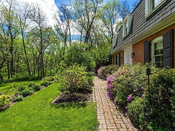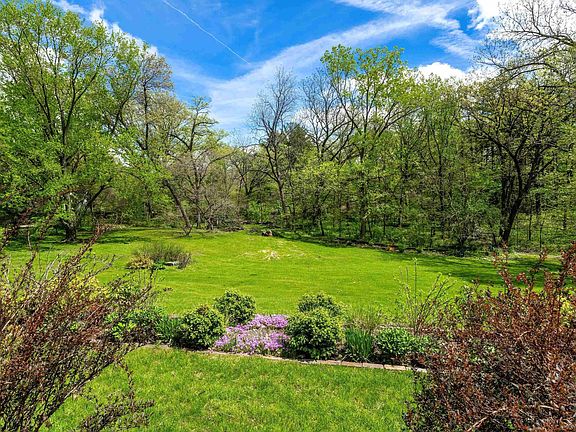 Gracious 1.5 story home tucked away on 3.13 acre wooded lot. Main floor features a welcoming entry; private office with built-ins; gourmet kitchen with high end appliances and an abundance of cabinetry; formal dining room; great room with coffered ceilings, built-in wet bar and adjacent music room; primary suite with generous clothes storage and en suite with soaking tub, dual vanities and tiled shower; family room; mudroom; and two powder rooms. Upstairs are four nice sized bedrooms (two with en suites) and a hall bath. Finished basement provides two rec rooms, wet bar, exercise room, half bath and unfinished storage. The grounds are exquisite and feature a serene patio overlooking the acreage which is also accessible from the great room. An attached 2-car garage along with a detached 2-car garage round out this graceful home.