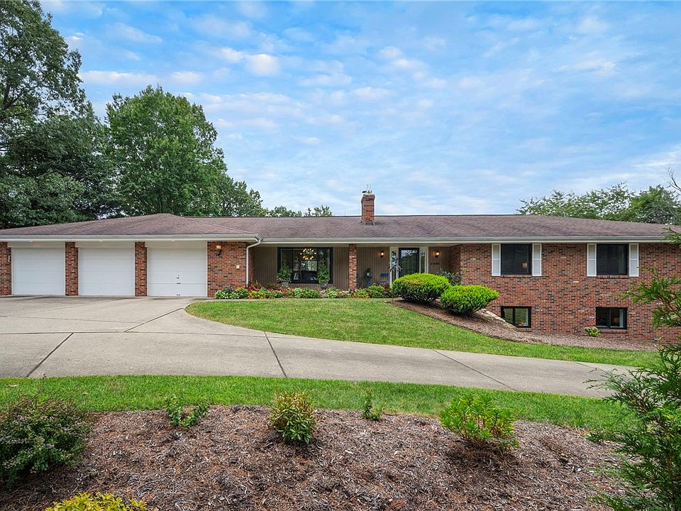 Nestled on 4.373 acres with breathtaking panoramic vistas, 1000 Pleasant Hill Road is a stunning 5-bed, 5-bath sprawling brick ranch offering over 5,000 sq ft of finished living space. Recently updated with new windows, quartz kitchen countertops, appliances, flooring, lighting, landscaping, and fencing, this home blends elegance and comfort. The grand foyer opens to a spacious dining room and a magnificent kitchen with abundant cabinetry, walk-in pantry, desk, and eat-in area. The expansive living room features a stone fireplace, wet bar, and deck access. A main-level sunroom and two powder rooms add convenience. The primary suite boasts a cozy fireplace, walk-in closet, and private bath. The lower level includes a large family room with pellet stove, storage, office nook, four bedrooms, and two full baths. Take a leisurely stroll on the path which leads to Knob Hill Park or enjoy the glorious sunsets from the covered patio overlooking the rolling countryside of Western Pennsylvania.