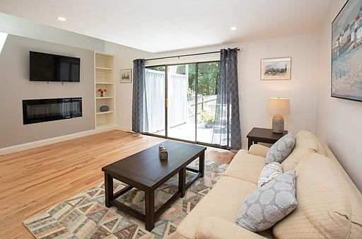 WOW! This 3-level unit has been updated with extreme detail and shows like brand new! All new baths, gorgeous, eat-in kitchen with quartz counters, Stainless appliances, self-close drawers and wood-like rectangular tile flooring. Efficient and brand new heat pump & A/C, electric fireplace recessed in the wall & 1st floor gorgeous, red oak flooring. Want more? Brand new electrical panel and all new ceiling lighting fixtures, too! Full, finished basement for "quiet space" or kids' playroom & 2nd floor offers a nice, large master BR with full loft above and custom ladder! Spectacular storage? Great study for adults, or just a reading room! Not enough? A private deck outside the living room with its high ceilings is just waiting for those summer and fall nights for your relaxing/unwinding, and a nice, private, grassy yard, too! Be impressed! Don't wait! This one will go right away!!