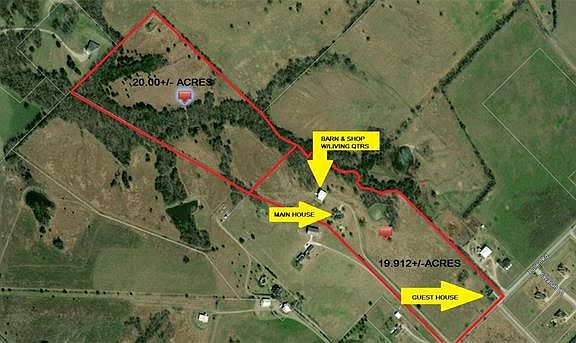 THE CHARMING FARMHOUSE IS AWESOME! THE LAND IS EVEN MORE AWESOME! PRIVATE, SECLUDED, PEACEFUL ROLLING TERRIAN PERFECT FOR A PERSONAL FOREVER GET AWAY! This is a RARE property with lots of developable acreage and BEAUTIFUL TREED ACREAGE ON THE BACK 20 ACRES BEHIND THE HOME. ENJOY THE PEACEFUL SCENERY FROM THE HUGE WRAPAROUND PORCH OF THIS 3 BED GEM SIITTING ON NEARLY 40AC of PARADISE offering Native trees like Pecan, Cypress, Crepe Myrtle, Oak & more) Main home is light & bright w hardwoods, bead-board accents & lots of windows plus a oversized MSTR STE (1st flr) complete w fp, sitting area & roomy bthrm w Sep Shower & a CLAWFOOT TUB! Separate 2-2 Guest house (handicap) plus a 1200 SF BARN w WRKSHP & LIV QTRS!