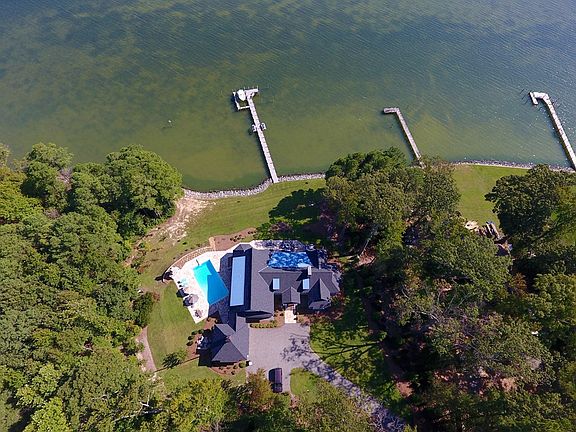 This is it. Sought after upscale waterfront construction with all of the luxury features for which you are looking on the Corrotoman River. Four bedrooms all with ensuite luxury baths, an amazing great room with stone wood burning fireplace which opens up to the dining area and massive gourmet kitchen. Walls of glass spread across the waterside of the home receiving the natural light and providing for gorgeous river views. Speakers throughout. The master suite is large with his and hers walk in closets plus a separate den where you can get away and watch tv or read a book and relax. The main living area walks out to over 4,000 square feet of outdoor living space including a large screened porch with wrap around granite bar and teak cabinetry, a huge pool with retractable cover, travertine surrounds and large outdoor fireplace, a massive waterside deck constructed of Ipe decking which steps down to a huge travertine patio complete with gas fire pit and hot tub. We haven't even reached the composite decked pier yet with two jet ski lifts, two boat lifts one 10K and one 15K. Hardie plank shake siding, stone foundation and conditioned crawlspace. Two car garage with breezeway. You will absolutely fall in love with this home. Too many great features to list here.