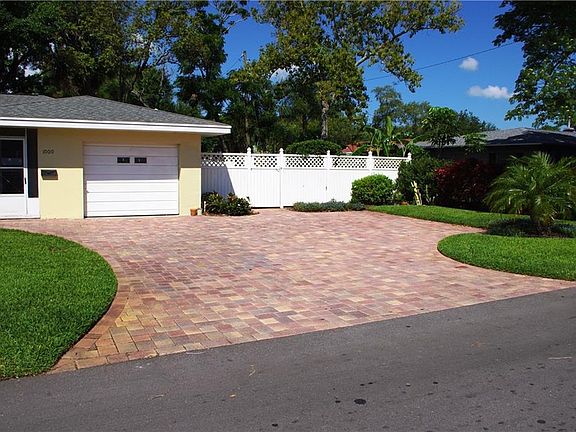 More curb appeal than should be legal! You'll love the beautifully diverse landscaping and over-sized pavered driveway. Check out the pictures! Rain Bird irrigation system connected to your own well (only about a year old) means your yard can look gorgeous and green year-round. This move-in ready BLOCK construction home is situated in unincorporated Clearwater. So no HOA rules and no HOA fees! Got a boat or RV? They're welcome here and the large fenced backyard and massive driveway will give you the space you need for parking those extra vehicles. And you'll love the open floor plan, 3 bedrooms and updated kitchen. Yes, all appliances convey including the washer, dryer, range, refrigerator, dishwasher and microwave. Your dining room is large and bright featuring a big picture window that looks into the backyard. Plenty of room for a swing set right outside the window and in clear view of the kitchen. AC was installed in May of 2011. This home is positioned in the heart of Clearwater only minutes from the white sands of Clearwater Beach, excellent shopping, dining, entertainment and schools. No flood insurance required. Spacious front patio fully covered and screened ideal for your morning coffee or evening wine. This home won't last long.