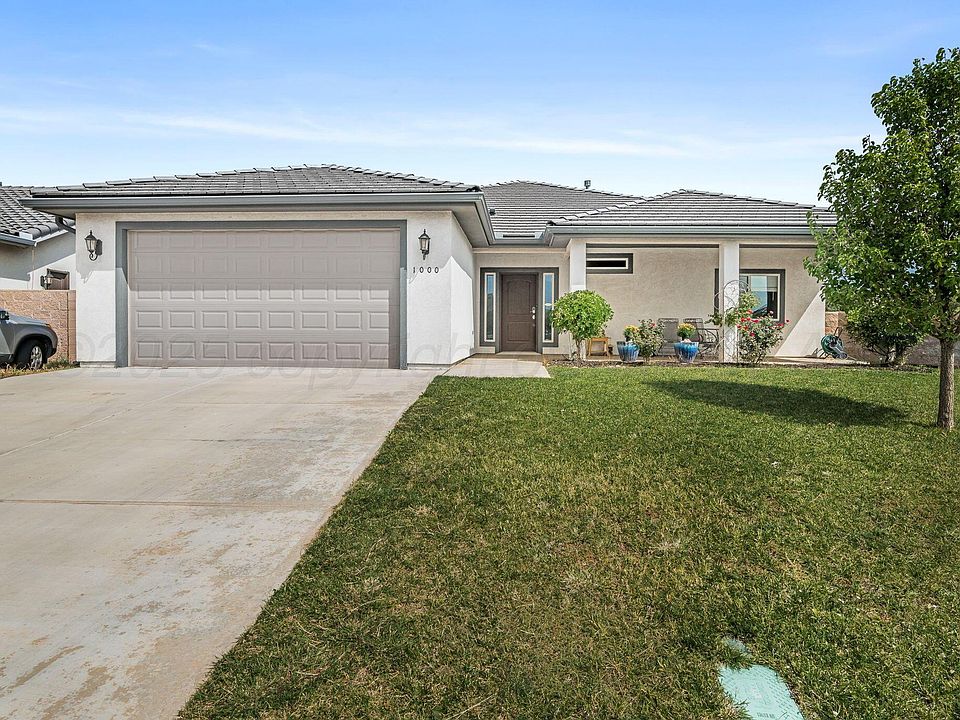 This beautiful 4-bedroom, 2-bathroom home is perfectly situated in the center of a quiet cul-de-sac, offering a larger lot and plenty of curb appeal with its gorgeous landscaping. Spacious living area with a vaulted ceiling, an isolated primary suite for privacy, and a versatile office area perfect for working from home or study time. The backyard has plenty of space to roam, featuring a pergola for extra shade, and a full irrigation system in the front and back—including a drip system for the flower beds—all managed with ease from an app.