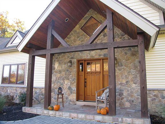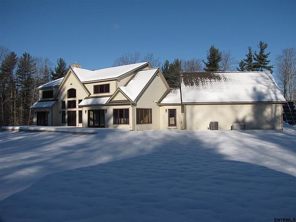 NOT a drive by-MUST be seen 14 private acres in Saratoga Schools! This 4,200 sq ft 6 yr. young custom post & beam has 4 bedrooms, 5.5 baths, 1st floor master with spa bath & customized closet. Cathedral ceiling great room with stone fp opens to a huge deck. Open floor plan with much light. Chef style kitchen with double granite islands & Thermador appliances. Wood floors throughout. Lower level media & family rooms, study, 2 laundry rooms & walk out! A 3 car garage, out building and rotating solar panels!