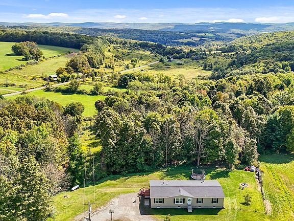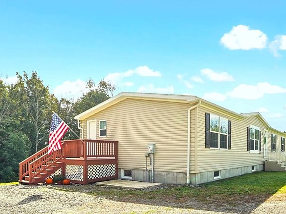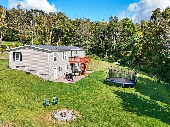 Uniquely built in 2015 with full walk-out basement offering over 3,000 sq ft of living space. 4 bedrooms includes a master suite on left wing and 3 beds and full-bath on right. Bright, open floor plan w/cathedral ceilings offers a breakfast bar w/farm sink, modern appliances, pantry, and sliders out to deck to enjoy the views. Cozy family room with woodstove & built-in media center ready for your flat screen.