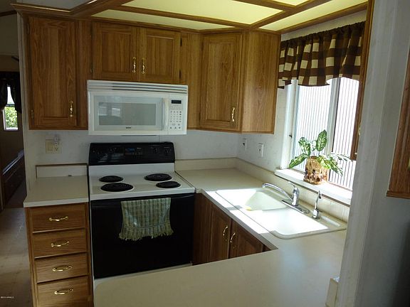 Nice, clean 1 bedroom, 1 bath home with shed and covered patio. NEW a/c and heating units!! Stack washer/dryer, furnishings included. Just bring your toothbrush! Roadhaven Resort is a 55 plus community with security guards, a 9 hole golf course, 2 pools, spa, tennis courts, restaurant and many activities.