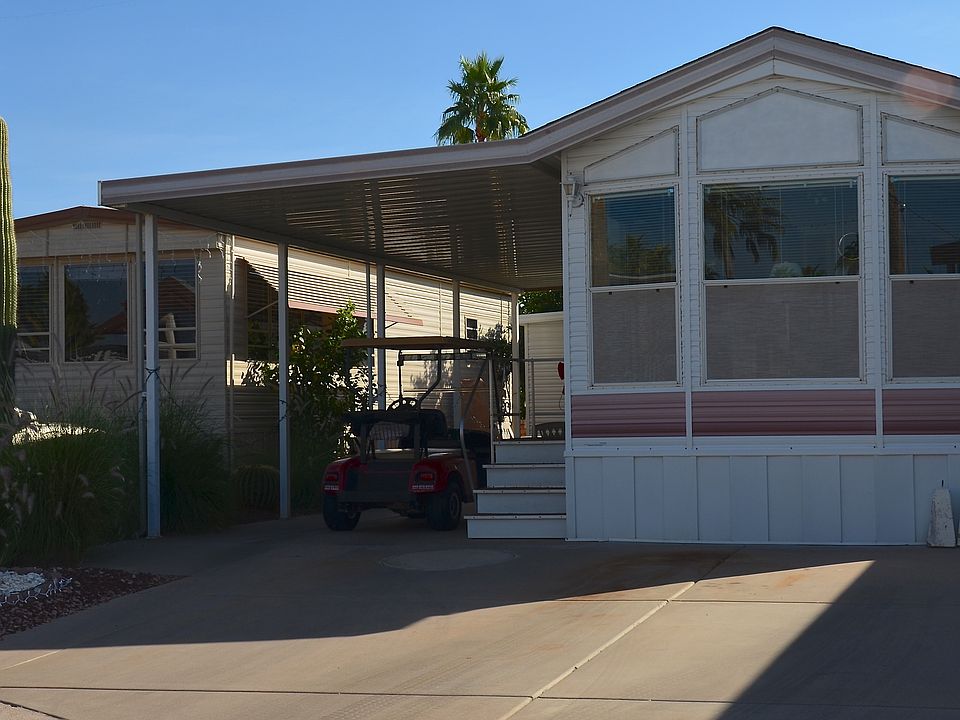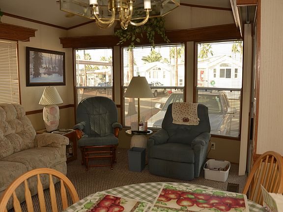 Lovely park model home; clean, bright, lots of storage, tastefully decorated and well equipped, ready to move in! Glass china cabinet doors to display your most treasured possessions, vaulted ceilings, storage shed with washer/dryer, built in dresser in bedroom, spacious bathroom with walk-in shower. Citrus trees in the backyard for breakfast! Welcome home!