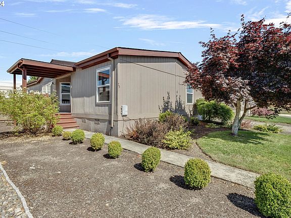 Come home to this beautiful double wide manufactured home located in the heart of Newberg. Built in 1995, this home offers 3 bed, 2 bath 1,188sqft, fresh new carpet, a large living room perfect for entertaining, massive kitchen with plenty of cabinet storage, 2 spacious guest bedrooms, full bathroom, primary with walk in closet, laundry room off the kitchen and more. Outside you have a fully fenced private back yard perfect for your summer BBQ's, tool shed, large carport, fully landscaped yard and more. Space rent is $999/ a month.