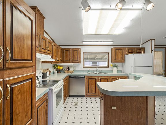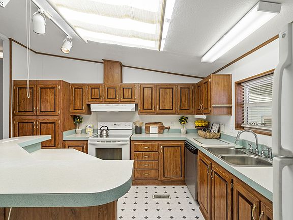 Welcome to this charming double wide in the beautiful all-ages Springbrook Estates! With new flooring and paint throughout, it offers a fresh and inviting atmosphere. Step onto the covered back deck and enjoy the tranquility of the sprawling field behind your space and let your pets roam freely in the fully fenced backyard. The carport provides convenient parking, and there's plenty of space to store your belongings in the handy storage shed. Inside, the large primary bedroom boasts a spacious bathroom featuring a soaker tub and separate shower. Vaulted ceilings add a touch of elegance, while the formal dining room is perfect for entertaining. The sizable kitchen with an island is a chef's dream, and the large laundry/mudroom adds practicality to your daily routine. Don't miss out on this wonderful home, offering comfort, style, and convenience!