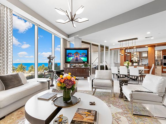 The majestic allure of One Thousand Ocean, the most coveted waterfront address in Boca Raton unveils its newest listing on the market - Residence 408. This designer finished and furnished condominium boasts 3,408 living SF and features 3 bedrooms, 3 and one-half baths, custom office, wine display wall and 3 private terraces. Unique to any oceanfront building in Boca Raton are the 10ft ceiling heights and floor-to-ceiling glass windows which allow for an abundance of natural light to beautifully illuminate the chic spaces. The spacious terraces overlook the ocean and mouth of the Inlet - which allows for the enjoyment of both sunrises and sunsets. The oceanfront terrace includes a full summer kitchen, plunge pool and outdoor furnishings. Private elevator landing and 2 car garage complete this offering. One Thousand Ocean residents also have access to an array of luxury amenities including 24/7 security, concierge services, a state-of-the-art fitness center, spa and sauna, a resort-style pool and cabanas, and much more.