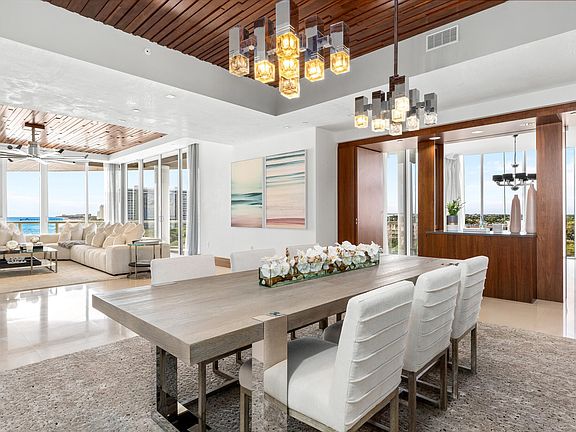 Perched within the prestigious One Thousand Ocean in Boca Raton, Residence 501 is an extraordinary oceanfront unit that embodies the epitome of modern architecture. Meticulously crafted, this residence offers an oasis of tranquility with four elegantly designed bedrooms and 4.1 baths. The expansive living space of 4,908 square feet presents an environment of serene luxury, meticulously designed to provide both comfort and sophistication. Upon entering the private foyer, natural light floods the interiors through expansive floor-to-ceiling glass windows, illuminating the contemporary-chic space. The residence showcases a seamless blend of form and function, marrying the breathtaking ocean, city, and intercoastal views with meticulous design finesse. Enhanced by two expansive wrap-around terraces, each providing a canvas for awe-inspiring views, this residence invites a harmonious connection with the surroundings.