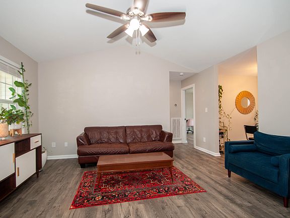 Welcome to this charming split-bedroom ranch! Enjoy the luxury vinyl flooring throughout, a cozy wood-burning fireplace, and a cathedral ceiling that adds elegance to both the living room and master suite. The spacious kitchen boasts granite counters and stainless steel appliances, perfect for any home chef. Relax in the screened porch or on the rocking chair front porch, while the large fenced backyard offers plenty of space for outdoor activities. Conveniently located near City Park, downtown, shopping & dining, this home combines comfort and style with the ease of nearby amenities. Don't miss out on this beautiful property!