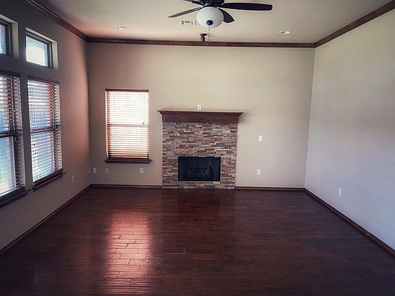 This beautiful home consists of a covered front porch with minimal landscaping for easy up keep. Tall stoned front entrance. Open concept with the living room, dining room, and kitchen. Perfect for entertaining! Gorgeous wood floors and tile throughout for easy maintenance. Entire house has recently been painted and all woodwork touched up. Has all the feels of a new build. Has ceiling fans in all bedrooms and living room. Beautiful fireplace for all those cold winter nights. Large windows in the living room and kitchen to over look the backyard. The Kitchen includes granite countertops and an island with extra seating. Don't forget about the conveniently located pantry for extra storage. Master bedroom is located on the opposite side of the bedrooms for peace and quiet. Master bathroom is complete with a double vanity, oversized jumbo tub, and separate shower all newly updated grey tile, and backsplash for more of a modern appeal. Bedrooms are generously sized with walk in closets. no pets, no marijuana of any kind, 1st month rent with security deposit due before moving in