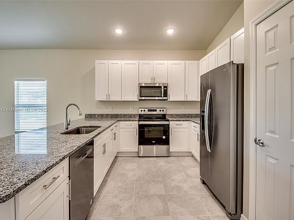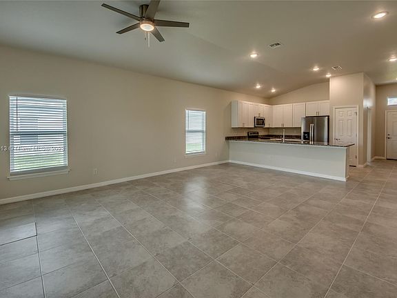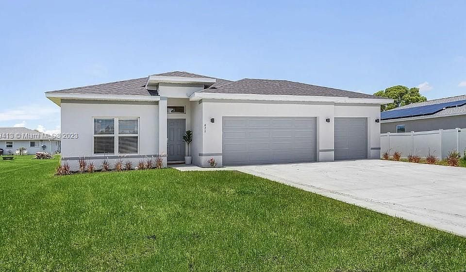 Brand new construction on an OVERSIZED CORNER LOT WITH A FENCE! NO HOA. NO FLOOD INSURANCE REQUIRED. ON CITY WATER AND SEWER! This gorgeous home offers 4 bedrooms, 2 baths and 1691 sq ft. of living space. The kitchen features granite countertops, stainless steel appliances, 42-inch cabinets with soft-close drawers, and a large kitchen bar with plenty of counter space. This home also comes with a 3-car garage which will give you plenty of space to keep your vehicles and more. Other features include tile throughout, vaulted ceilings, a screened-in lanai, tons of storage space, and hurricane-impact doors and windows. This property is on city water, sewer, and irrigation. The home is beautifully landscaped with a sprinkler system already installed. Washer & dryer included.