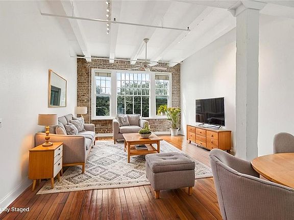 New kitchen countertopsNew bathroom vanitiesOversized windowsLight-filled open layoutOriginal wood floorsSoaring beamed ceilingsExposed brick
