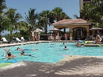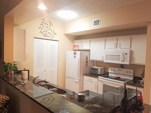 GATED INTRACOASTAL COMMUNITY! 1st floor 2 bedroom condo with Upgraded Granite Counters in Kitchen & Bath! Tile Throughout, upgraded appliances, full size w/d in condo, volume ceilings, walk in closet, covered patio, secure building/cameras, lobby with mailbox, and trash room. Resort Style clubhouse on intracoastal, heated pool, pavilion, covered spa, gym, sauna, billiards, bbq areas, & private beach next to marina! Association dues included in rent which covers water & some air broadcasted channels. All ages & Pet friendly!