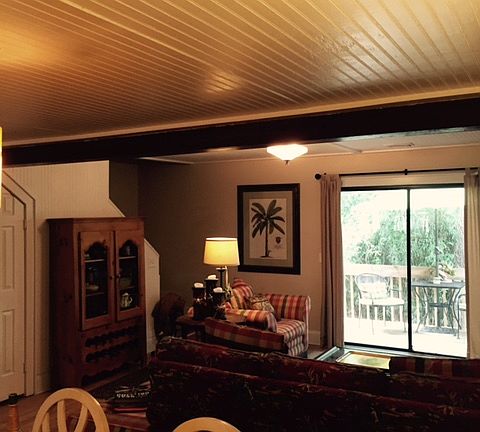 This cute renovated 2 story 3 bedroom condo on South St.Simons Island is a great find! Once you step inside this adorable 3 BR condo, you will be hooked! Bead board ceilings, an open view from the kitchen to LR and fireplace and deck make for an ideal vacation rental w/fantastic income potential! The pool is just steps away and there is a private outdoor shower at the kitchen entrance for your return from the beach. Your own large storage shed outside offers you a great place for beach gear and bikes. Perfect for investors who wants to start small on the island, retirees or a 2nd home. Ideally located at the base of the island, you are just a bike ride away from everything. The back deck offers a quiet wooded view towards the golf course. New roof, 3yo AC, new flooring, updates throughout.