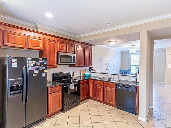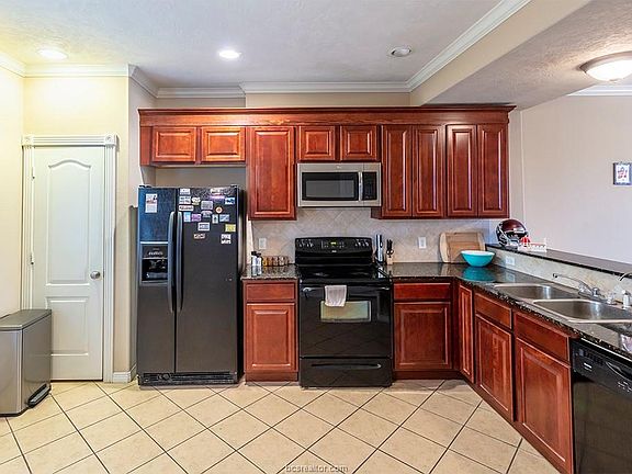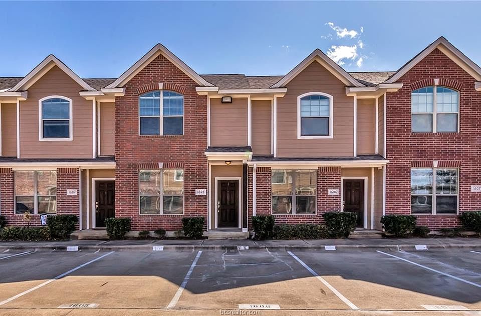 Meticulously kept 2 bed 2.5 bath Condo on the aTm bus route only 2.5 miles from the University! This unit sits in a gated community with wonderful amenities like a pool, hot tub & club house with pool table & workout area. Great floorplan with the living, kitchen, dining & .5 bath downstairs & both bedrooms with each of their own full baths upstairs along with 2 separate built in desk areas! This unit features granite, all electric, 2 inch blinds, new microwave, new water filter & external kitchen vent. Unit has all tile downstairs, carpet replaced in 2017, large closets & vaulted ceiling. Large patio with storage closet. Washer, dryer & refrigerator will stay.