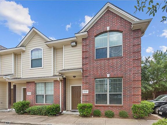 This gated community of River Ridge Townhomes offers a clubhouse, pool, media facility, fitness room, hot tub, and a privacy fenced patio. In the heart of Aggieland, it's close to campus, shopping, restaurants, and conveniently located on the TAMU bus route! This property is special as it is a corner unit at the end of the building! Tile floors and crown molding on the main floor invite you into this stunning 2 bedroom/2.5 bathroom condo. The kitchen is equipped with many wonderful features such as stainless steel appliances, an electric range, and a beautiful granite top eating bar. Walk upstairs to bedrooms with raised and vaulted ceilings and great size walk-in closets! You won't want to miss this!