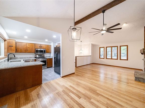 UPDATED and super unique home! VIDEO Tour attached. New in 2024: Roof, granite countertops, tile in kitchen and foyer, kitchen/bath faucets, paint throughout, front door, lots of new lighting and other updates; dishwasher '20, HVAC replaced in last 4 years! Lot approx 4/10 acre with trees and multi-level deck and fire pit. Vaulted Great Rm and stone fireplace with gas logs. Lower level has dbl garage, bonus room (or 3rd bedroom which has a closet), and add'l storage. Oversized garage. Kitchen has bar, undercount sink and beautiful granite countertops, and Gas 5-burner stove. Gorgeous tile shower in Primary bath. Great location in central Auburn close to shopping and schools.