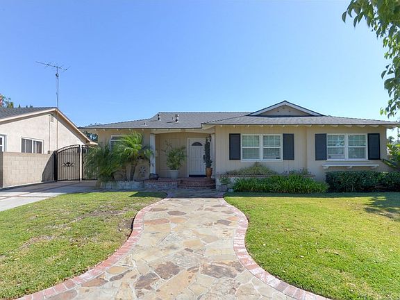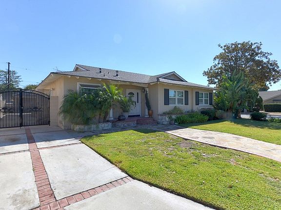 Marvelous corner lot home situated in the highly desirable Raymond Hills area. Once you approach the property, you will be astounded by its great curb appeal, beautifully landscaped with a lush and natural atmosphere of greenery. Stone lined formal entry greets you. Upon stepping inside, you'll feel instantly at home with its comfortable & spacious floor plan. Hardwood and tile floors throughout, living area with a cozy fireplace, ceiling fans, crown moldings, recessed lighting, and lots of natural lighting through newer windows. The chef's gourmet kitchen boasts black dazzling granite countertops, dark wood cabinets and a pantry, bay window, trey ceiling, and modern stainless steel appliances. Interior laundry with storage cabinets is right by the kitchen. Closets have organizers and lots of space with extra cabinets added to the master bedroom. Huge family room addition has beautiful wood beam ceiling with an additional fireplace and direct access to the 200+sf covered patio with lovely brick patio pavers. Plenty of parking with added (and permitted) driveway and a detached 2 garage with alley access. Beautiful backyard with fig, lemon, grapefruit trees and a raised garden bed. Upgrades include 200 amp electrical panel, irrigation with front and back timer and copper plumbing. Centrally located between the 91 & 57 freeways, close to Fullerton's best school campuses, from Acacia Elementary and award-winning Troy High School to Cal State Fullerton. An absolute must-see!
