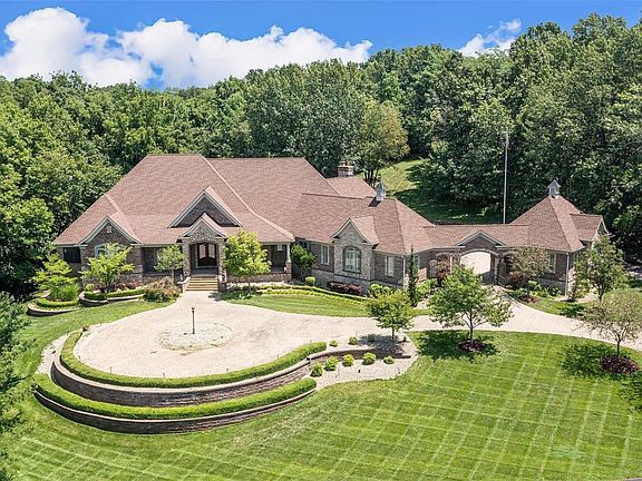 Welcome to THE ULTIMATE DREAM HOME IN OFALLON featuring an elegant circle driveway and gated courtyard with 6-car garage. Home includes over 9000 sq ft of FABULOUS featuring a Grand Entry Foyer, 4 bdrm, 6 baths, Den, formal living rm & hearth rm with fireplaces, custom shelving and vaulted ceilings, formal dining rm, Gourmet Kitchen with top-of-the-line appliances, built in coffee maker, recess lighting, custom cabinets, multiple center islands, wine cooler, ice maker breakfast rm and breakfast bar. The Primary bedroom offers coffered ceilings, walk in closet, built in coffee maker & fridge, fireplace, LUXURY bath with separate tub, 6 head shower & dual vanities. The elevator that takes you to a Magnificent lower level boosting a large great rm with fireplace, multiple bar areas, office which could be additional bedroom, game rm, gym area w/custom gym floor & workshop. The outdoor space offers covered several entertainment areas, 2 fireplaces, kitchen-aid gas grill, pool with hot tub.