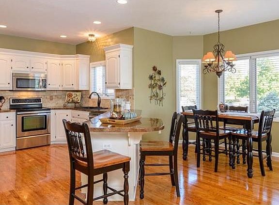 WONDERFUL FAMILY HOME w/5 beds/4 baths w/large fenced backyard in popular Langston Hughes Elementary School area! Open & spacious plan w/lots of light! Office, living room, large kitchen w/eat-in area, formal dining and half bath on the main level. Master suite, 2 beds and full bath on the 2nd level plus 2 bedrooms, 3/4 bath, family room w/bar in the fully finished daylight basement. Close to restaurants, shopping, entertainment, Rock Chalk Park and I-70. Hurry and you can move in before the holidays!