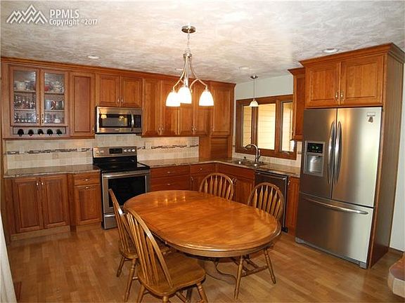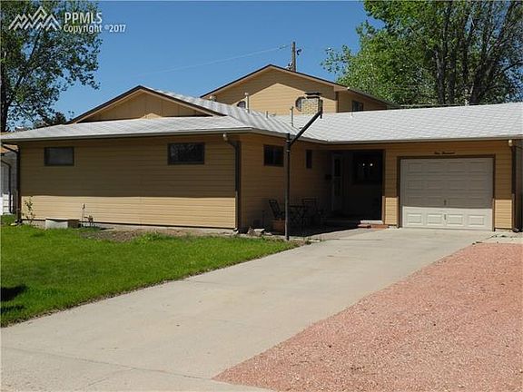 This Beautiful Home is Conveniently Located Close to Ft Carson & Peterson Air Base. You Immediately Notice the Outstanding Curb Appeal & Beautiful Landscaping. The Property has 5 Bedrooms, 2 Full Baths & 1 Car Garage. Entering the Home you are Greeted w/ Hardwood Floors Throughout the Main Level. The Kitchen Offers Granite Countertops, Tile Backsplash, Slide Out Drawers in the Pantry, Under Cabinet lighting, Soft Close Cabinet Doors, and Appliances are Included. The Kitchen Eat-In Dining Area, Includes Sliding Doors to a Private Patio, and Warm Inviting Pass-Through Wood Fireplace Between the Kitchen and Formal Dining Rm. From the Entry This Home Opens into The Spacious Great Rm, Dining Rm Combo, with Plenty of Natural Bright Light. The Upper Level Includes 2 Bedrooms, Vaulted Ceilings, and a Cozy Window Loveseat with Storage, Just Inviting Enough for Reading or Listening to Music. 3 More Bedrooms on the Main Level, Including the Master Suite with Large Closets, as well as an Attached 3/4 Bath. Newer Anderson Windows Throughout this Home, Newer Electrical Panel, Whole House Surge Protection, Auto Sprinklers, Water Softener, & Storage Galore. The Laundry Space Is Conveniently Located off the Kitchen with More Storage & Built-in Storage Cabinets. This Home Includes RV Parking, Backyard Large Storage Shed/Play House, Lovely Grassy Area & Flowerbeds. This Property is an Outstanding Value, Lovingly Well Maintained, and Completely Move-in Ready TODAY! This will be your favorite ! Come take a Look