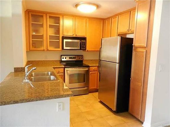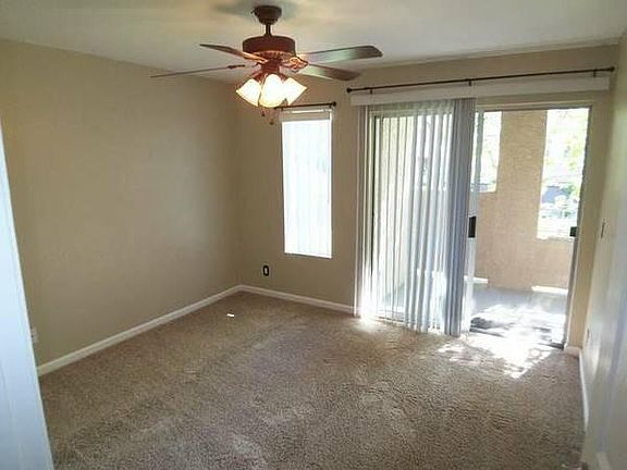 This beautiful 1 bedroom and 1 bath third floor condo in a resort like gated community of Triana offers lots of amenities including association pool, spa, gym, volleyball courts, adjoining park & green belts. Enjoy the extensive views of the mountains and sunset from your south facing large balcony. This condo features vaulted ceilings, new double pane sliding doors, crown molding, recess lightings and fans, and a new A.C unit. Kitchen has a large eating area, granite counter tops, large cabinets, stainless steel appliances, electric cooking, dishwasher, built-in microwave oven, and the refrigerator is included. The bathroom has granite counter tops, a large decorative mirror, and brand new walk in tile shower. The master bedroom has a ceiling fan, walk-in closet, and new double pane sliding door which leads to a beautiful large balcony. The laundry room is inside and both washer and dryer are included. There is also a single car parking garage included. Water and trash are included in the rent. * The condo unfurnished is $1,600 a month and the initial deposit is $1,600 * Available Now Please provide your credit score and latest pay stub. Thank you! Available November 1, 2019. Thank you!