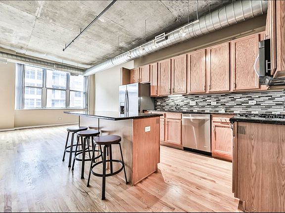 Rarely available 2 bed, 2 bath corner unit! This upscale loft-style condo is located in one of the most desirable buildings in the West Loop. To top it off is a stunning lobby with 24-hour door staff to welcome you home. Enjoy the ideal floorplan from the moment you enter. A large hallway closet and in-unit W/D sit just off the entryway. The long hallway leads to a beautiful kitchen and island that opens up to a spacious dining and living room, which along with the rest of the home boasts 10.5' concrete ceilings. The living room also features a gas fireplace, floor to ceiling windows, and a private balcony. Unlike many other units in the building, both bedrooms have windows. The master bedroom has an en suite bathroom and walk-in closet. Elevator building. Pets welcome. TWO (tandem) indoor, heated garage parking spots INCLUDED in the price. Extra-large storage locker and bike room also included. Other highlights include a well-equipped fitness center (with Peloton!), business center (free PCs, printing, and internet), rooftop deck with an amazing skyline view, and full-service dry cleaner. Unbeatable location just one block from Mary Barteleme Park, walking distance to Whole Foods, Target, Starbucks, Mariano's, Fulton Market, all the shops and award-winning restaurants on Randolph, and close to the 'L' line, bus stop, and highway. 2 tandem, indoor, heated parking spots included in price. No smoking unit. Up to two pets allowed (pet type limitation). Included in rent: Cable TV, Wi-Fi, Water, Parking, Doorman, Exterior Maintenance, Storage Locker, Snow Removal, Common Insurance, Gym. Fees/deposits include: security deposit (equal to 1 month's rent); annual building fee per dog; move-in and out non-refundable fees; move-in and out refundable deposit.