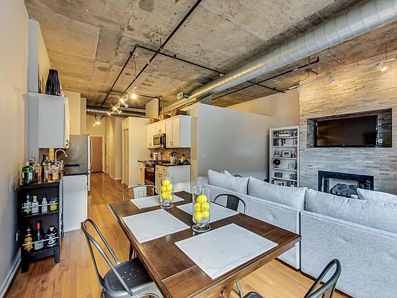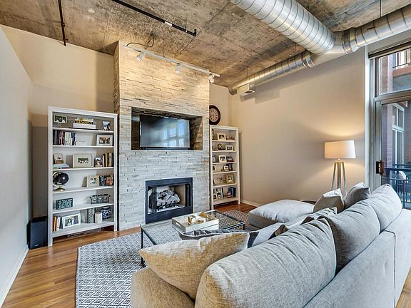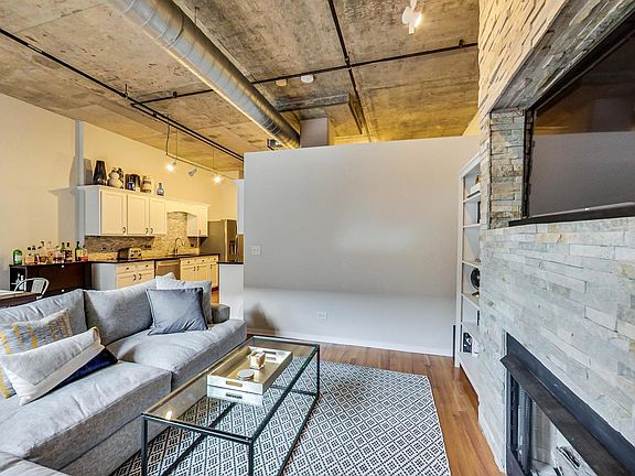 Chic 814 SF 1 bedroom/1 bath concrete loft in one of the most pristine mid-rise full amenity elevator buildings in the West Loop! Move right into this extremely well appointed space complete with hardwood flooring throughout, updated kitchen with granite countertops and stainless steel appliances. Tons of storage plus additional storage cage included. Large bedroom with built out closets. Recently rehabbed full bathroom with modern vanity and subway tiling plus soaking tub. Natural stacked stone gas fireplace and backsplash. In-unit washer & dryer. 1 deeded garage parking space also included. This is one of the most beautifully maintained buildings in the neighborhood. Amenities include 24-hour door staff, business center, two common outdoor spaces (patio and rooftop deck), newly renovated gym, bike storage and on-site management. Walk to everything in the West Loop... Whole Foods, Mariano's, all of the bars/restaurants on Randolph & Fulton Market Streets, cafes, parks, etc. Move right into this gorgeous home!