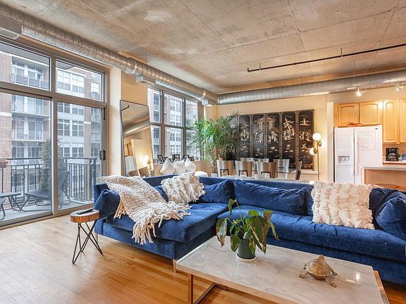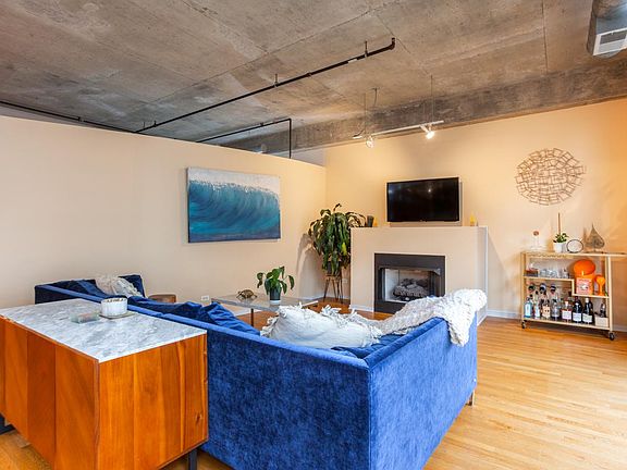 Rarely available 2 bed 2 bath corner unit! This upscale loft-style condo is located in one of the most desirable buildings in the West Loop. Enjoy the ideal floorplan from the moment you enter. A large hallway closet and in-unit W/D sit just off the entryway. The long hallway leads to a beautiful kitchen and island that opens up to a spacious dining and living room, which along with the rest of the home boasts 10.5' concrete ceilings. The living room also features a gas fireplace, floor to ceiling windows, and a private balcony. Unlike many other units in the building, both bedrooms have windows. The master bedroom has an en suite bathroom and walk-in closet. Elevator building. Pets welcome. TWO (tandem) indoor, heated garage parking spots INCLUDED in the price. Extra-large storage locker and bike room also included. Other highlights include a well-equipped fitness center (with Peloton!), business center (free PCs, printing, and internet), rooftop deck with an amazing skyline view, and full-service dry cleaner. To top it off is the stunning lobby with 24-hour door staff to welcome you home. Unbeatable location just one block from Mary Barteleme Park, walking distance to Whole Foods, Target, Starbucks, Mariano's, Fulton Market, all the shops and award-winning restaurants on Randolph, and close to the 'L' line, bus stop, and highway. 2 tandem, indoor, heated parking spots included in price. No smoking unit. Up to two pets allowed (pet type limitation). Included in rent: Cable TV, Wi-Fi, Water, Parking, Doorman, Exterior Maintenance, Storage Locker, Snow Removal, Common Insurance, Gym. Fees/deposits include: security deposit (equal to 1 month's rent); annual building fee per dog; move-in and out non-refundable fees; move-in and out refundable deposit; application fee per applicant.