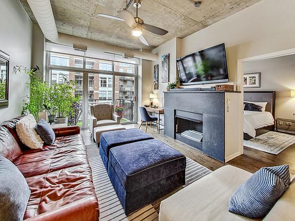 Welcome to this exceptional mid-rise condo in a highly sought-after location, just a short 10-minute commute from GOOGLE and conveniently situated near a lovely park. This condo offers an array of thoughtful upgrades to enhance your daily living experience. As you step inside, you'll discover a spacious living room featuring beautiful hardwood flooring, a gas fireplace with a remote start option, and automated blinds that respond to your voice commands. From here, you have access to a private balcony with captivating views. The kitchen is a chef's dream, boasting granite surfaces, 42" maple cabinetry, stainless steel appliances, and a convenient island with a breakfast bar. Adjacent to the kitchen, you'll find a smart thermostat that allows you to easily control the climate. The master suite is designed with your comfort in mind, offering abundant natural light through oversized windows, a walk-in closet with custom organizers, and a spacious shower with a bench, two niches, and floor-to-ceiling tiling. Additionally, the backlit vanity mirrors in this bathroom feature a heating feature to suppress fogging. The second bedroom provides plenty of storage space and shares access to a fully updated hall bathroom with a shower and tub, surrounded by floor-to-ceiling tile. Throughout the condo, custom closets have been installed to keep your belongings neatly organized. In-unit laundry adds to the convenience of this home. Additionally, the building features amenities like a 24/7 doorperson, on-site building manager, designated bike room, a 3rd-floor communal patio with a fire pit, and a rooftop deck. For commuters, the condo is just 3 blocks from the blue line and 4 blocks from the green line. This condo effortlessly combines modern technology with timeless elegance, providing a comfortable and stylish living space that caters to your everyday needs. If you're looking for a blend of comfort, convenience, and style, this condo is the perfect fit. Don't miss the chance to make it your own - schedule a private tour today and experience the best of both worlds in this remarkable property.