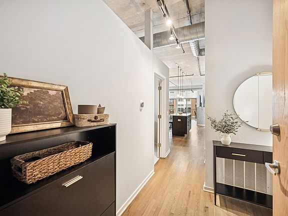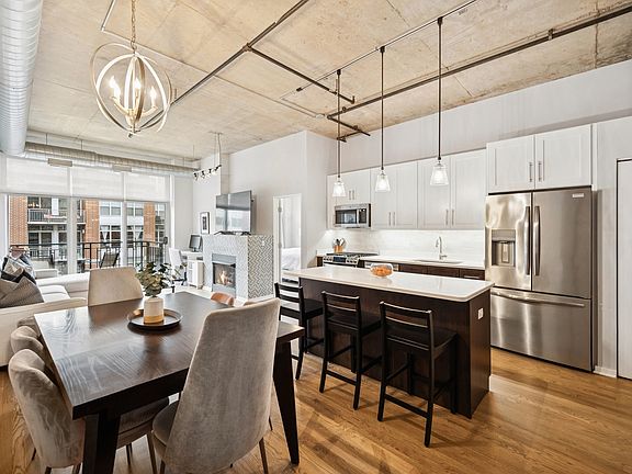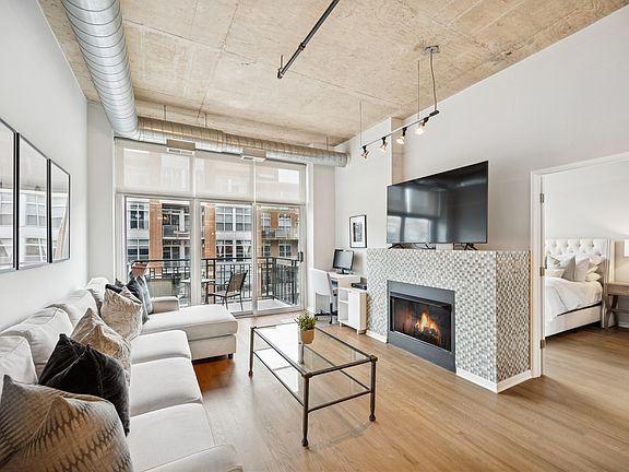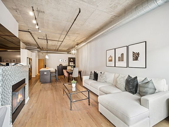 Live in the heart of the West Loop in one of the neighborhood's most sought-after buildings! This bright, open-concept home features a stunning renovated kitchen with shaker cabinets, sleek modern hardware, a spacious quartz island with built-in storage, a coveted pantry, and newer stainless steel appliances. Perfect for entertaining, the kitchen seamlessly connects to a generous dining area that comfortably fits a large table and buffet. The inviting living room offers ample space for seating, a cozy gas fireplace, and direct access to a private balcony-ideal for grilling or soaking in natural light and airy high-floor views. The fully enclosed primary suite is a serene retreat, complete with a custom-built closet and a beautifully renovated en-suite bathroom featuring a large walk-in shower, new vanity with quartz countertops, and elegant tilework. A spacious second bedroom is accompanied by a fully updated second bathroom with a soaking tub, newer vanity, and modern finishes. Additional features include a newer in-unit washer and dryer, recently refinished hardwood floors throughout (excluding the second bedroom), extra storage, and garage parking INCLUDED in the price. This full-amenity building offers 24-hour door staff, a stunning rooftop deck, third-floor terrace with a firepit, fitness center, business center, dry cleaners, and bike room. All just steps from world-class dining, public transit, 90/94 access, and Mary Bartelme Park-only a block away. Welcome home!