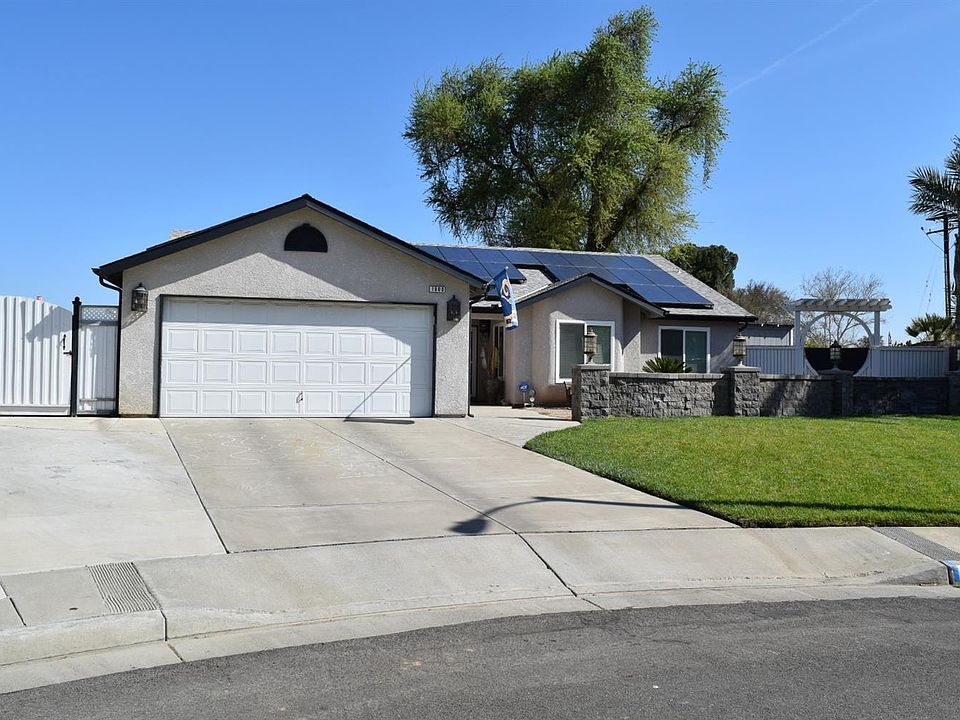 Beautiful home in north west Hanford. Located on a very quiet Cul-De-Sac sitting on almost 1/3 acre. Large kitchen featuring tile counters and floor. Indoor laundry. Master suite located at rear of home, with his and her's walk in closets. 2 sliding doors exit out, one side onto the patio featuring a koy pond and the other exiting out to the East side to raised Garden area. Master bath has extra large tub and private shower. Large living room with a fireplace and laminate flooring. Sliding glass door leads out in to the back yard. Come relax and listen to the water fall in koy pond. Home features 3 more bedrooms. Solar installed. Possible RV Parking on west side of home.