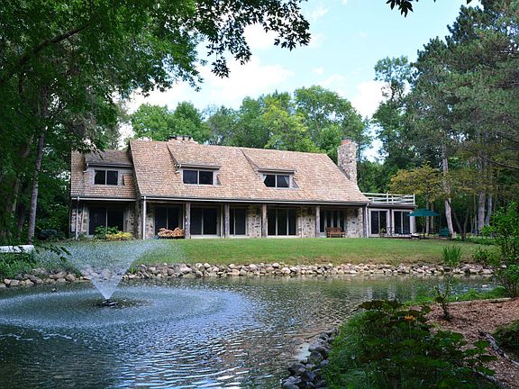 Beautiful, serene, private Cape Cod, located on 5 acres in River Hills is designed for 21st century living and entertaining, yet all of the warmth, character and period details have been retained. Enjoy spacious living & family rooms, 3 first floor fireplaces and an amazing kitchen w/ breakfast room that includes soapstone counters as well as Sub Zero, Viking & Bosch. 1st floor Master Suite has spacious en suite Travertine bath. 4 additional bedrooms plus gameroom on 2nd level. Enjoy views of the beautifully landscaped yard with private pond, woods & wildlife. Tesla ready garage awaits!