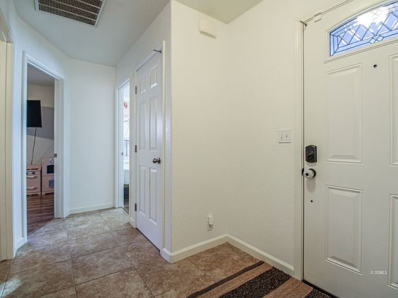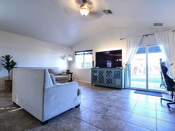 Try not to miss this newer built 1,602 sq. ft. home with 3 bedrooms and 2 bathrooms in a very clean and ready to move-in condition! There is a unique and relaxing waterfall feature with high-end turf to complete the welcoming front yard. As you enter the front door, a bright and spacious foyer that opens to the guest bedrooms which are situated separate from the master bedroom and feature beautiful new vinyl wood flooring with a spacious guest bathroom. The hallways have plenty of room to roam and lead you to a gorgeous granite kitchen with large island counter. Stainless steel appliances in kitchen are nearly brand new! Tiled flooring in the main areas are great for keeping the home cool and clean, especially with the home's dual-cooling (AC & evaporative cooler). The living room features a vaulted ceiling which leads into the master bedroom. Master bedroom is a good size with walk-in closet and dual vanity. There is a tub/shower combo along with an additional walk-in shower on the opposite end. Lush green grass back yard for children to play. The covered patio allows for entertaining guests any time of the year! See it & fall in love!