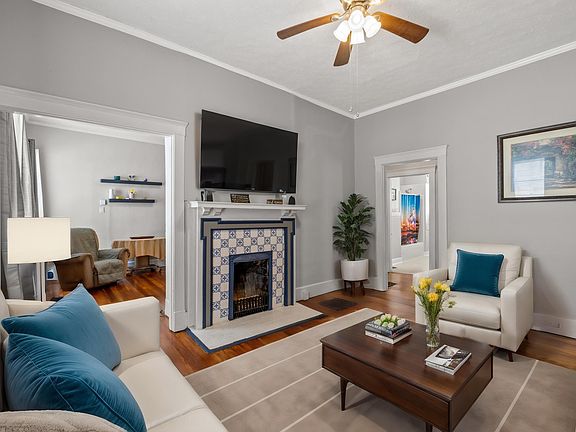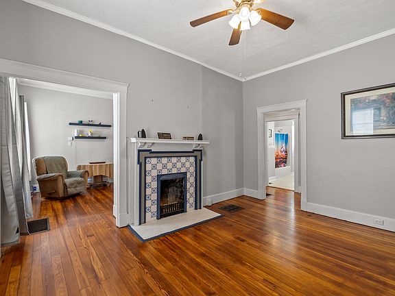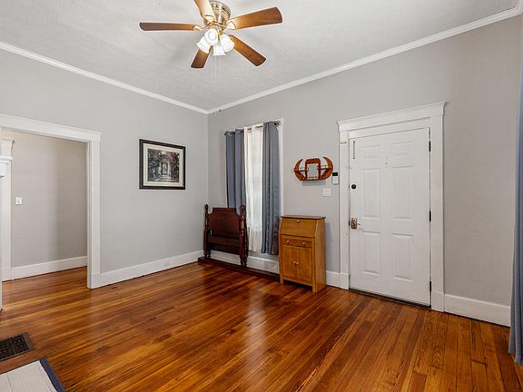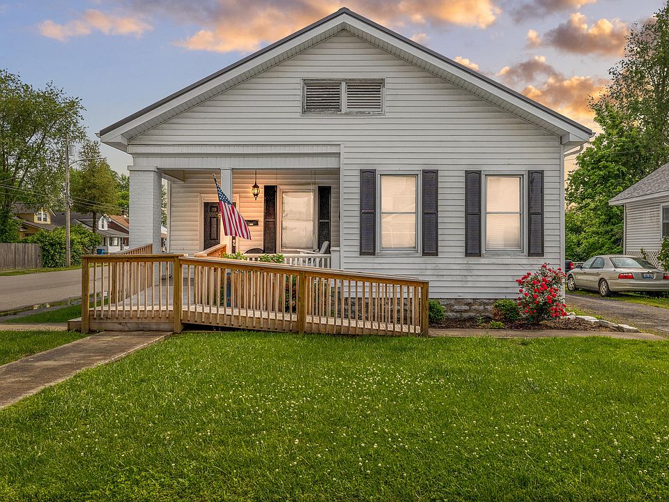 Discover the charm of downtown Danville living in this inviting 4BR/2BA ranch home nestled on a corner lot. Step onto the deep covered front porch and into the welcoming foyer, where hardwood floors lead you through a traditional floorplan. The den area seamlessly transitions into the spacious living room, adorned with high ceilings. Two well-proportioned BR's with hardwood floors flank a renovated BA, while the 4th BR offers versatility and could be used a playroom or convenient office space. Not to be overlooked, a massive private primary suite with its own BA, offering a peaceful retreat.