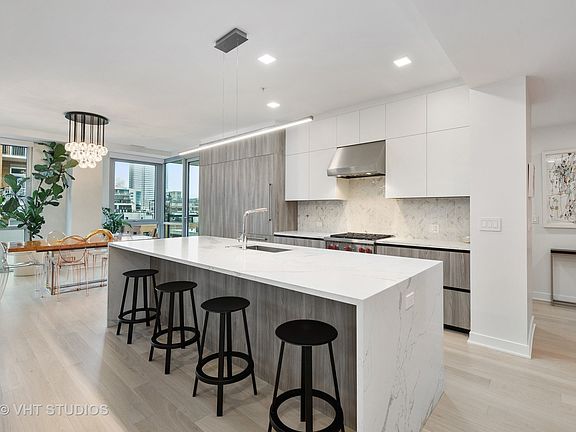 Lightly lived in 6th floor 3 bedroom condo in West Loop's New Construction, Mille. Exclusive luxury elevator boutique building with 12 individual units. Just 2 residents per floor. Unit is south/east facing with a stunning city view of the Willis Tower, from the generous glass-enclosed balcony. Enviably the best centrally located building in the heart of the West Loop. High end finishes throughout including custom Copat Italian cabinetry, Wolf, Sub-Zero appliances, and high-end light fixtures. The finishes will please even the most discriminating buyer. This is a rare opportunity to buy new and not go through the building process. Parking space in garage can accommodate a parking lift so 2 cars can park in the unit's assigned space.