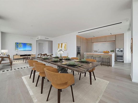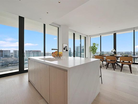 Elegant Residences rising skyward above a five-star hotel offering comfort and intimacy of an expertly-designed home with hotel benefits including a rooftop pool & terrace and access to a full-service spa, residents will enjoy EDITION's signature approach. Privacy is assured with each floor limited to a small number of homes, and a private residential entrance, lobby, concierge and elevators dedicated to The Residences. Floor-to-ceiling windows invite panoramic views of Tampa Bay and the downtown skyline, while sliding glass doors lead to generous wraparound terraces with post-less glass railings. Interiors inspired by Roman and Williams create airy, exceptionally inviting spaces with ten-foot ceilings. Wide plank 10-inch white oak Grato hardwood floors throughout. Polaris White marble kitchen countertops with waterfall island and custom white oak Molteni Italian Millwork with powered upper cabinets. Gaggenau Kitchen Appliances including wine cooler and 5-burner gas cooktop. Miele fully venting hood incorporated into cabinetry. Laundry room with Electrolux Washer and Dryer.