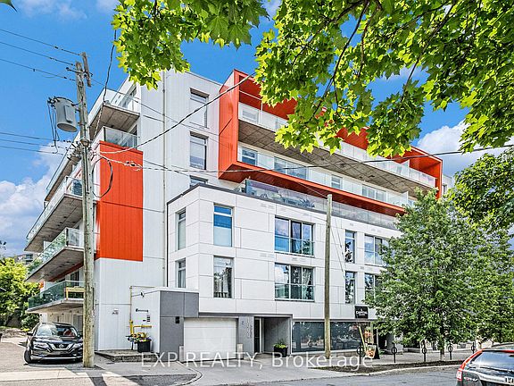 Discover the perfect blend of modern style and everyday functionality in this stunning 1-bedroom + den condo at The Eddy, a LEED Platinum-certified gem in vibrant Hintonburg. Boasting sleek design, premium upgrades, and a private balcony with captivating views of the neighbourhoods lively core, this home offers an unparalleled urban living experience. Inside, you'll find an open-concept kitchen and living area with quartz countertops, sleek cabinetry, and stainless-steel appliances. Soaring 9-foot exposed concrete ceilings, hardwood floors, and floor-to-ceiling windows bring in natural light, enhanced by professionally installed custom privacy shades and upgraded ceiling lighting throughout. The bedroom features a custom-built closet system with shelving and drawers, while the den provides flexibility for a home office, reading nook, or guest space. Additional upgrades include a Nest thermostat with smartphone control, extra electrical outlets, and designer lighting. This unit includes in-unit laundry, one underground parking spot, a storage locker, and even a private garden plot. Condo fees cover heating, cooling, and water offering convenience and peace of mind. Life at The Eddy also means access to a rooftop terrace with BBQs, lounge seating, and sweeping views of the Ottawa River and Gatineau Hills. Just steps from Bayview Station (LRT& buses), and surrounded by coffee shops, bakeries, restaurants, grocery stores, yoga studios, and boutique shops, you'll love everything Hintonburg living has to offer. Whether as your primary residence ora smart investment, this stylish and eco-friendly condo embodies the best of connected, urban living.