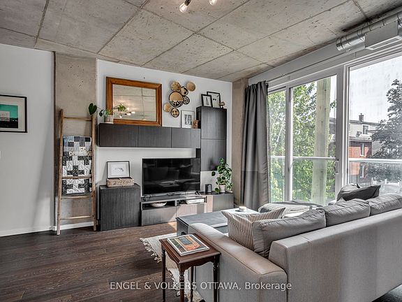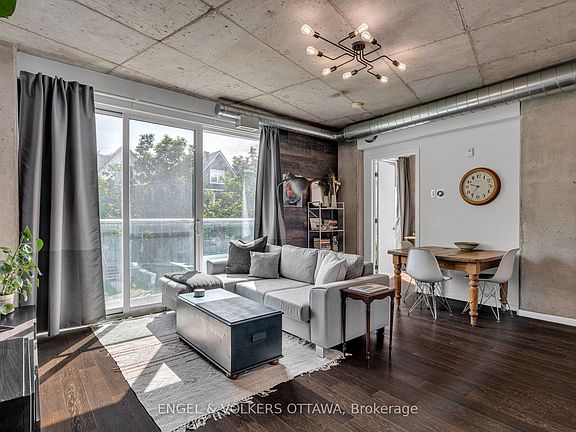 Enjoy sustainable, stylish urban living in this bright and spacious corner unit at The Eddy - a boutique LEED Platinum-certified condominium in the heart of Hintonburg. The open-concept layout is ideal for both everyday living and entertaining, featuring a sleek European kitchen with quartz countertops, high-efficiency appliances, ample storage, and a convenient eat-in area. Floor-to-ceiling windows and a Juliette balcony overlooking a charming, quiet side street fill the space with natural light, creating a peaceful urban retreat. The large primary bedroom includes a work-from-home nook and a custom walk-in closet. Residents enjoy access to an exceptional rooftop terrace with garden plots, outdoor dining spaces, a communal firepit, and panoramic views of the Gatineau Hills, Ottawa River, and surrounding neighborhoods. Prime location just steps from Bayview LRT Station, with Little Italy, Chinatown, and LeBreton Flats nearby - offering easy access to transit, green space, and some of Ottawa's best dining and culture. Additional features include geothermal heating and cooling, in-suite laundry, secure ground-floor bike storage, one parking space, and a storage locker.