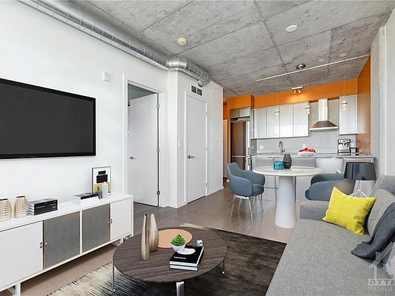 Located in the heart of charming Hintonburg, The Eddy offers a perfect mix of urban lifestyle and local community feel. Eco-friendly, LEEDS Platinum Certified building ideally nestled among endless cafes, eateries and shops. Walking distance to parks, Wellington Village, Westboro, Chinatown and Little Italy. Easy access to transit, highway 417 & quick commute to downtown. This 1 bedroom is well laid out & features a rarely offered 242 sf terrace. The kitchen boasts steel gloss cabinets, upgraded appliances including a convection oven and induction cooktop and a generous island with quartz countertops. Warm hardwood throughout, custom blinds and upgraded lighting complete this space. Spend summer nights BBQing on the rooftop terrace with views of the Ottawa River, downtown and Gatineau Hills. Grow your own produce in your deeded rooftop garden plot. State of the art mechanical parking means never going underground! 2022-08-16