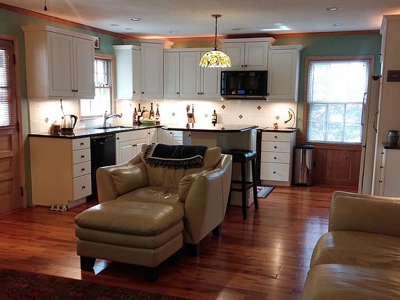 Brick ranch - all trim is vinyl clad. Full basement (daylight, walkout). Total of 2,160 sq.ft. finished (1740 main level, 420 basement). Updated open kitchen-den with granite counter tops, newer appliances, solid hardwood floor and wood burning fireplace. Upstairs laundry. Two car garage. Large three season room with attached two level deck. Wood stove in basement den/office/rec-room. Large fenced back yard. Excellent schools - Piney Grove Elementary (2 miles), Kernersville Middle (4.5 miles). At the 5th green of Pine Knolls golf course. Neighborhood pool. Redfin Comps $188,799. Zillow Comps $198,550. Priced to sell at $187,500.