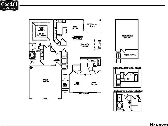 Hanover floor plan has 3 bd and 2 bth all on one level.