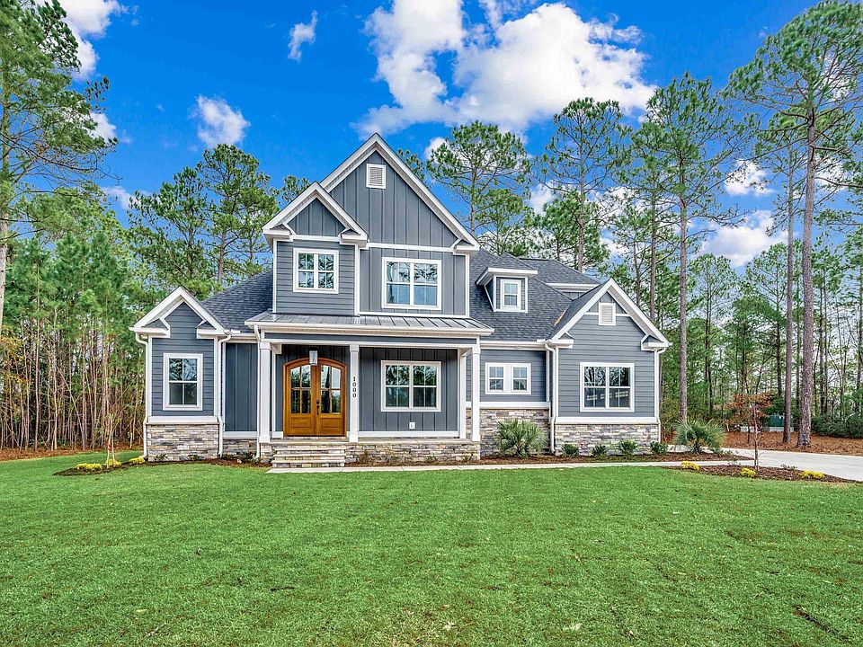 Newly back on the market! Beautiful craftsman style home on a wooded ~1 acre lot in the Wild Wing Plantation subdivision. This open concept 4 bedroom, 2 1/2 bath, located on a cul-de-sac, should not be missed! Spacious living room and kitchen are second only to the luxurious primary suite, with double closets and walk in shower. Too many upgrades to list, such as custom cabinetry, high end countertops, two fireplaces, real engineered hardwood flooring, and open staircase.  Second story, has large bedrooms and jack and Jill bathroom attached, with another large bedroom or bonus room.  Just minutes from the shopping of Myrtle Beach, all while enjoying the quiet golfing neighborhood. Click the link to experience a 3D walk through of this property.  https://my.matterport.com/show/?m=bKAASFN6bv1