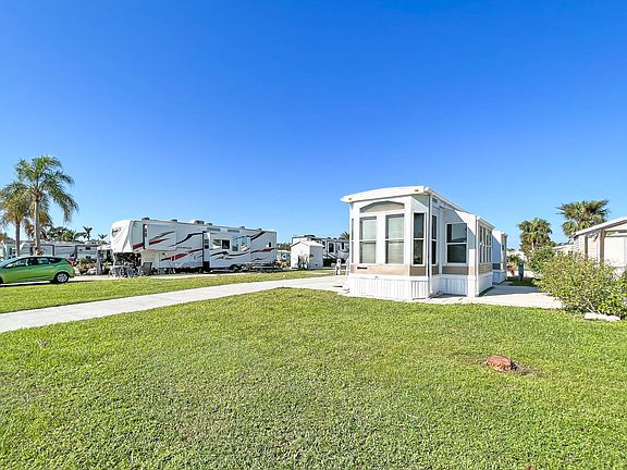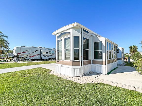 LOWEST LOT RENT IN TOWN! Imagine waking up to a warm sunrise, enjoying your coffee in your spacious living area, filled with lots of oversized windows, surrounded by beautiful palm trees, giving you that Florida feel. This is the home you're looking for and the one with all of its charm. Large wall to wall windows allows that beautiful Florida sun to naturally lighten and welcome the day. Kitchen comes fully stocked with appliances including fridge, oven/range, dishwasher, garbage disposal and microwave. Additional appliances include a washer. The spacious kitchen also looks over the open dining and living area, full of lots of lighting, giving home a bright and cheery feel. The spacious floor plan has carpet and linoleum flooring in every room. Other features include central A/C, smoke alarms, ceiling fans and built-in cabinets. Master bedroom has good space, with windows to brighten your day at any time of day as well as a walk-in closet for that extra space. This home also has some outside sitting areas, including a small, covered porch area for those whole love the Florida warmth. With plenty of parking and a shed to give you extra storage space what else do you need. Don't miss out on this affordable opportunity in beautiful Naples!