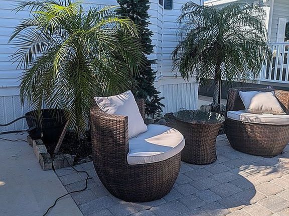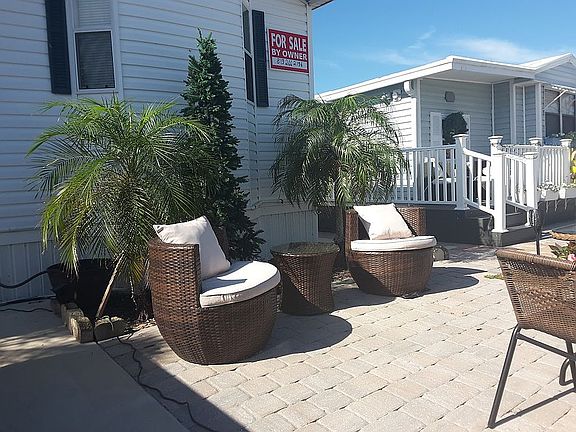 This 1/1 park model manufactured home is located in Lake San Marino (Sun Outdoors) UNIT L 5 Lake Side which is a 55 and up community on leased land, now paying 876$/month, which includes lawn mowing ,garbage,sewer, and use of all amenities which includes a very nice pool, shuffle board, and pickleball courts and a fenced dog park. Some many features of this home includes a new A/C heat pump (Mini Spit) in 2025,new roof 2021, electric range , fridge, dishwasher, new hurricane proof windows, new samsung washer and dryer, electric seating leather lazyboy, vaulted ceiling, ac in florida room with beautiful Lake view.King size bed. Exterior balcony with two electric awnings. This home is located steps away from the clubhouse and pool. This community is just minutes away from the sandy beaches and shopping district, publix, walmart and restsurants. This home includes all furnishings, just walk in. Call or text at 819 266 2196 for more info