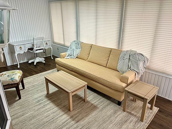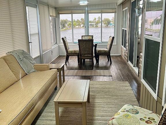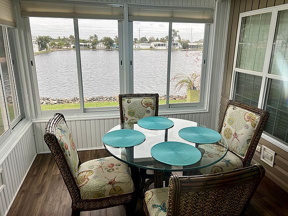 **Discover Your Dream Home in Sunny Southwest Florida!** If you're in search of the ideal residence in the heart of Southwest Florida, your search ends here! This beautifully furnished home features 1 bedroom and 1 bath, complete with a factory-built front porch—perfect for unwinding with friends and family. The home showcases white cabinetry and a spacious kitchen adorned with granite countertops, with all appliances included for your convenience. Nestled within the picturesque Lake San Marino Resort, this property offers the perfect blend of relaxation and an active lifestyle. Located in highly desirable North Naples, you're just minutes away from stunning beaches and the Gulf of Mexico. This remarkable park model home, built in 2012, is a hidden gem that comes fully furnished, allowing you to simply move in with your personal belongings. As you step through the front door, you'll be greeted by a stylish interior featuring light cabinetry, luxury vinyl flooring throughout, and a generous 602 square feet of living space with high ceilings. The home also includes all new KitchenAid major appliances, new light fixtures and fans, updated bathroom with new granite and toilet . This also has a brand new combo washer/dryer which saves space . This home is turn key with two brand new flat screen tvs . The living room sectional is new from Basset , dining Ethan Allen, split king serta bed is a bonus . Set in a vibrant 55 & up community, Lake San Marino provides a welcoming atmosphere for those seeking both tranquility and activity. This exceptional home is competitively priced and won't last long on the market. Experience the essence of Florida living—schedule your private viewing today! *Note: Lot rental fee is $1,045/month.*